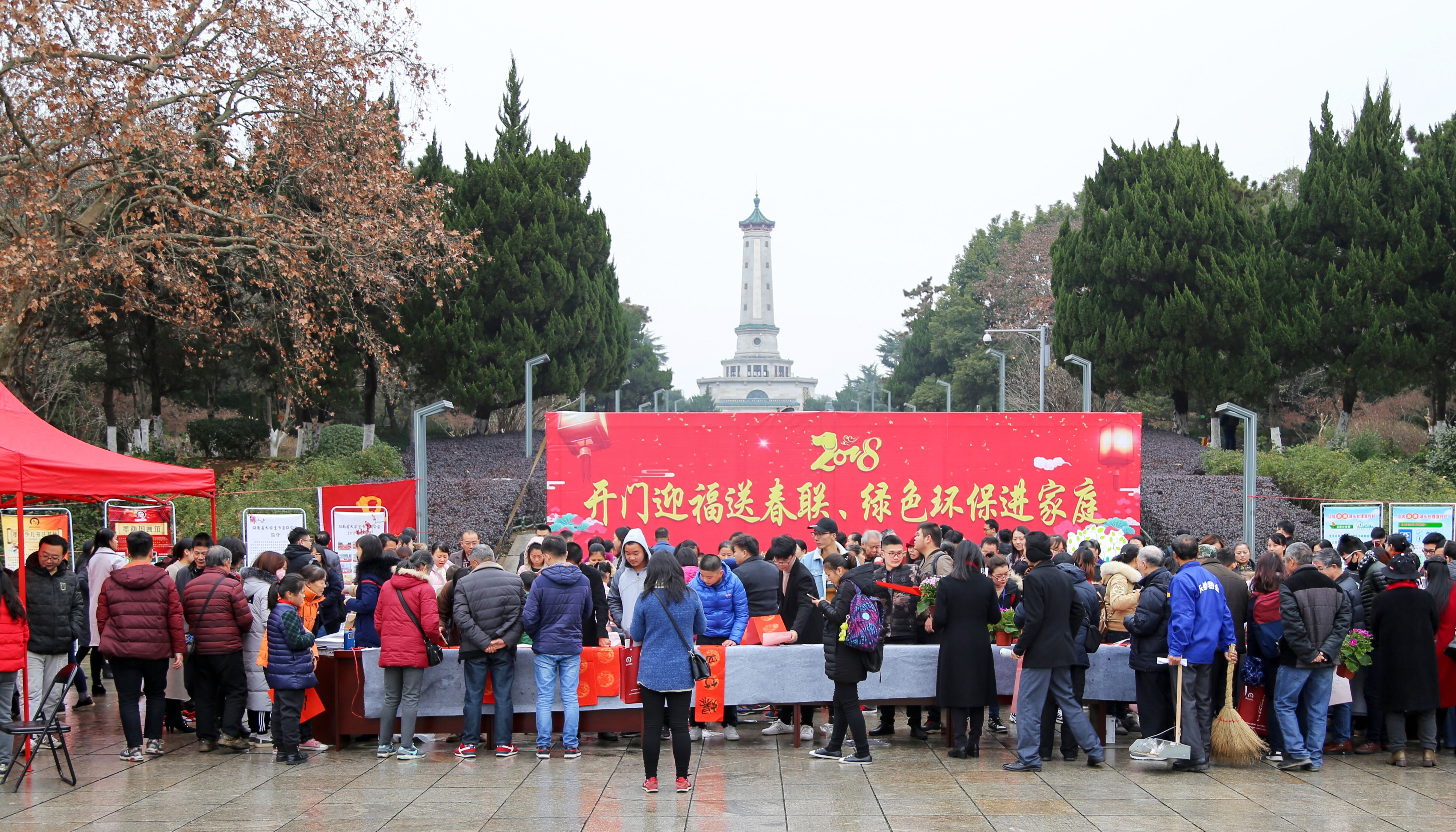 新年伊始,万象更新。为认真贯彻落实党的十九大精神,深刻践行习近平总书记提出的“绿水青山就是金山银山”生态理念,不断将烈士公园建设成为人与自然和谐共存的城市绿心,2018年1月1日,湖南烈士公园管理处、工会、团委和湖南省大学生书法联合会在公园一级广场面向市民游客开展了一场精彩纷呈地以“开门迎福送春联、绿色环保进家庭”为主题的环保知识宣传暨开门送福活动。