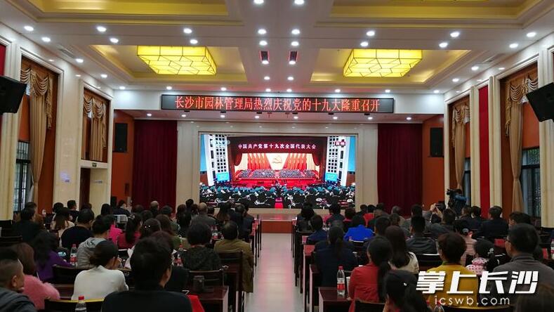 市园林局集中收看十九大开幕会盛况直播。长沙晚报记者周柏平摄