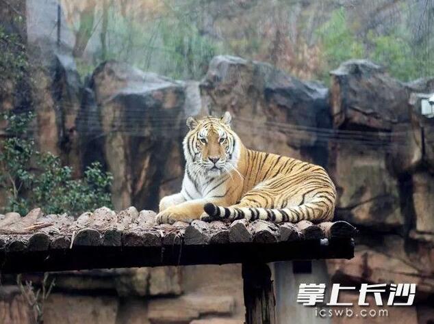 记者今日在长沙生态动物园看到,虎馆、豹馆等场馆的室外活动场,工作人员已搭建好了草棚,即使在阴雨寒冷天气里,金钱豹、东北虎们只要愿意,可到草棚下休息,只是,老虎们有时更愿意呆在棚子上面,挑战寒风,以显其王者之气。