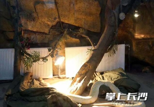 黄金蟒在室内有人造“太阳”照着,当然不冷了。